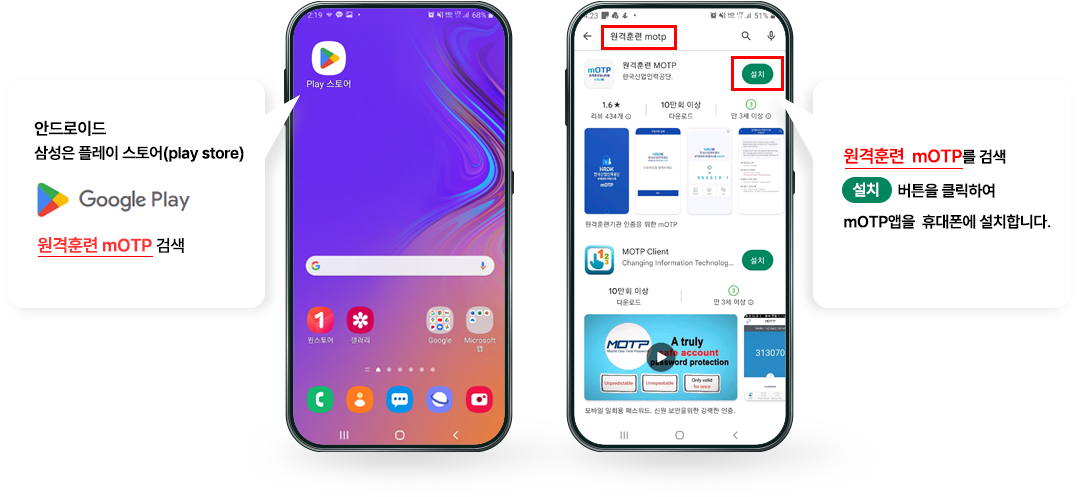 원격훈련 mOTP를 검색하여 설치합니다.