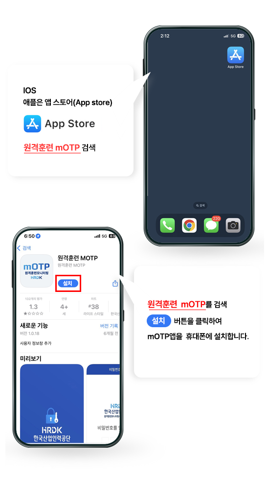STEP 01 사용하는 휴대폰(스마트기기한정)에 따라 삼성은 플레이 스토어(play store), 애플은 앱스토어(App store)에서